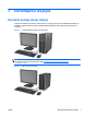 1 Izstrādājuma iespējas Standarta konfigurācijas līdzekļi Iespējas var atšķirties atkarībā no datora modeļa. Lai iegūtu pilnīgu datorā uzstādītās aparatūras un instalētās programmatūras sarakstu, palaidiet diagnosticēšanas utilītu (iekļauta tikai dažos datoru modeļos). Attēls 1-1 Transformējamā minitorņa konfigurācija PIEZĪME. HP Compaq transformējamo minitorni var viegli pārvērst par galddatoru. Plašāku informāciju skatiet šīs rokasgrāmatas sadaļā Nomaiņa no horizontālās uz minitorņa konfigurāciju 46.