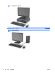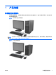 图 1-3 薄型卧式纤小机配置 注: 薄型卧式纤小型计算机还可以使用立式机配置。有关详细信息,请参阅本指南中的“第 94 页的 从台式机改为立式机配置”。 图 1-4 2 第 1 章 超薄台式机配置 产品功能 ZHCN