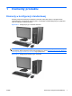 1 Elementy produktu Elementy w konfiguracji standardowej Elementy komputera różnią się w zależności od modelu. Pełną listę sprzętu i oprogramowania zainstalowanego w komputerze można uzyskać, uruchamiając narzędzie diagnostyczne (dołączone tylko do niektórych modeli komputera). Rysunek 1-1 Konfiguracja typu convertible minitower UWAGA: Komputer HP Compaq typu Convertible Minitower można łatwo przekształcić w komputer typu desktop.