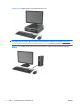 Изменение горизонтальной конфигурации на вертикальную Модель со сверхплоским корпусом можно использовать в вертикальной ориентации с вертикальной подставкой, поставляемой с компьютером. 1. Снимите/откройте устройства безопасности, препятствующие открытию компьютера. 2. Удалите все съемные носители, такие, как компакт-диски или флэш-накопители USB. 3. Надлежащим образом выключите компьютер с помощью меню операционной системы, затем выключите все внешние устройства. 4.