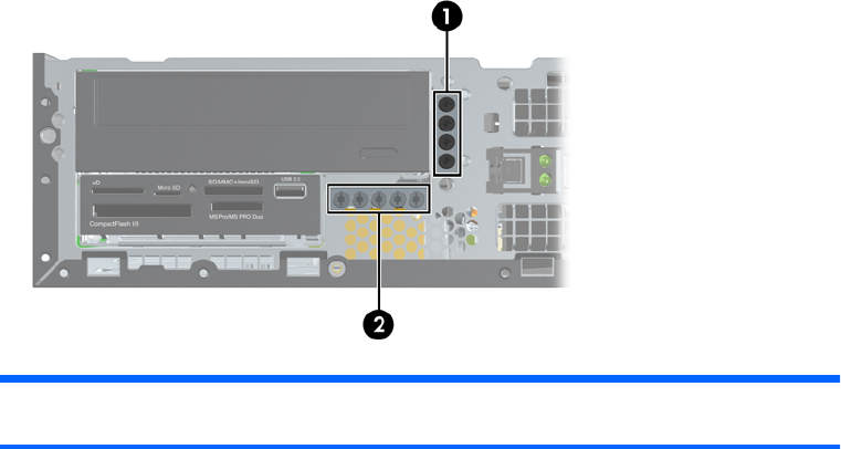 - Компоненты передней панели модели с уменьшенным корпусом Small Form Factor (SFF)