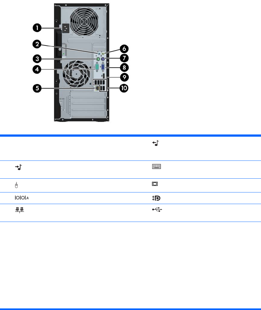 - Компоненты задней панелей модели с вертикальным корпусом Microtower (MT)