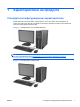 Конвертиране от конфигурация Minitower на хорилна конфигурация 1. Отстранете/освободете всички защитни механизми, които пречат на отварянето на компютъра. 2. Извадете от компютъра всички сменяеми носители, като компактдискове или USB флаш устройства. 3. Изключете компютъра чрез операционната система, след което изключете и външните устройства. 4. Извадете щепсела на компютъра и изключете външните устройства от контактите.