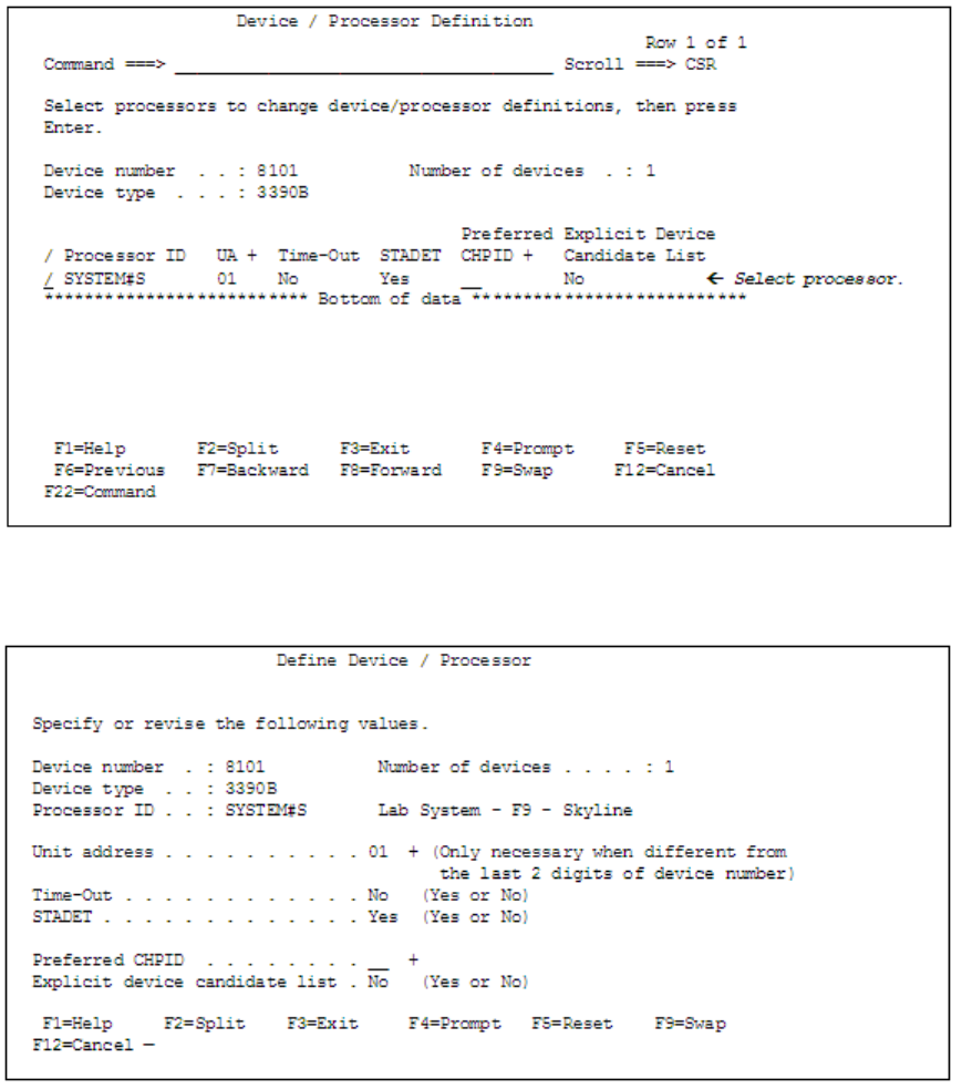 Figure 32 Device / Processor Definition Panel - Selecting the Processor ID