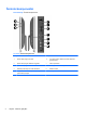 Šoniniai komponentai 1-3 Iliustracija Šoniniai komponentai 1-2 Lentelė Šoniniai komponentai 4 Komponentas Komponentas 1 Optinis diskų įrenginys su dėklu 6 HP „penki viename“ laikmenų kortelių skaitytuvas (pasirenkamas) 2 Optinio disko įrenginio išstūmimo mygtukas 7 USB 3.0 prievadas 3 Optinio disko įrenginio veikimo LED indikatorius 8 Greitojo įkrovimo USB 3.