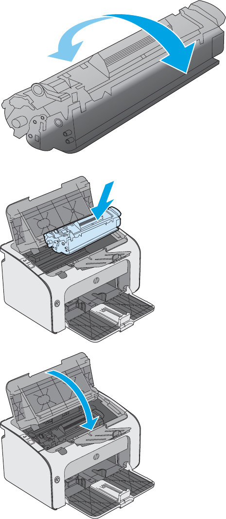 6. Išlygiuokite naują dažų kasetę pagal griovelius
