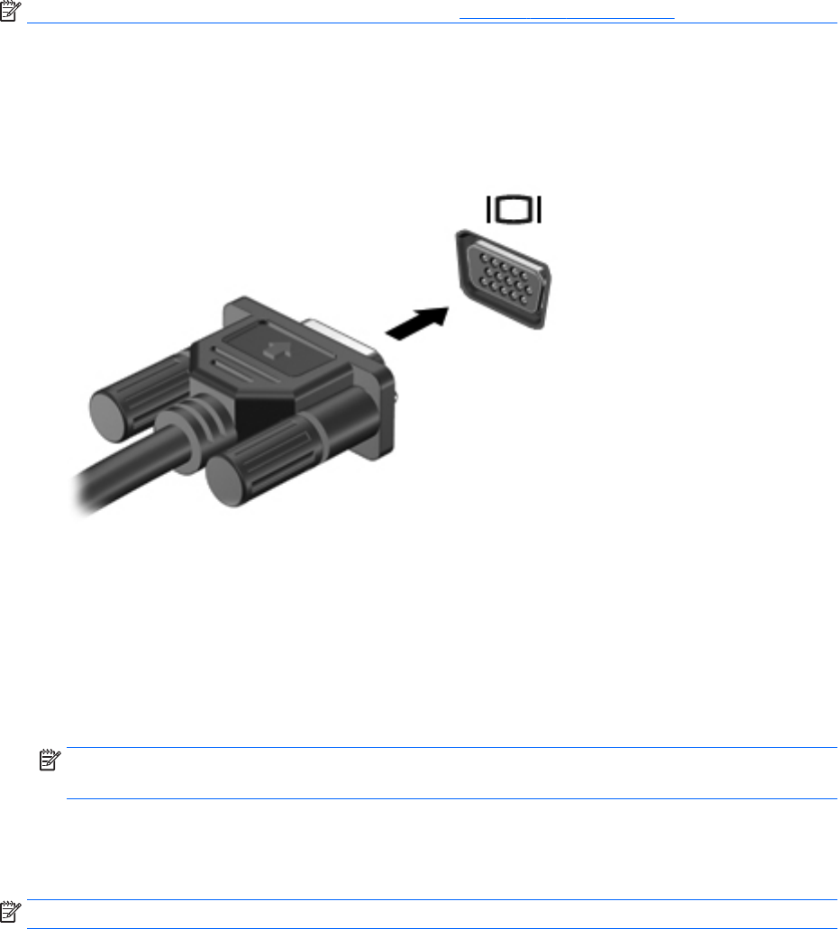 1. 若要連接 VGA 顯示裝置,請將裝置的纜線連接至外接式顯示器連接埠。