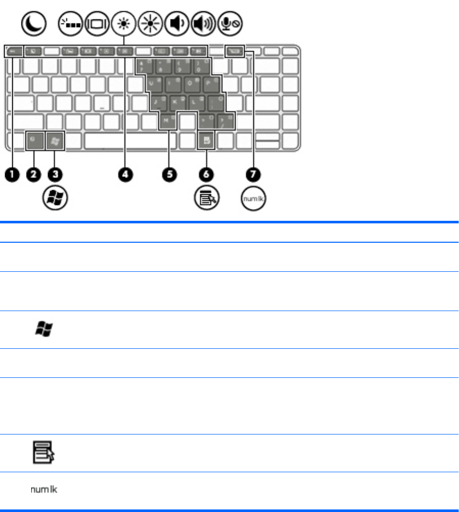 (7) Klawisz num lk Włącza/wyłącza wbudowaną klawiaturę numeryczną po