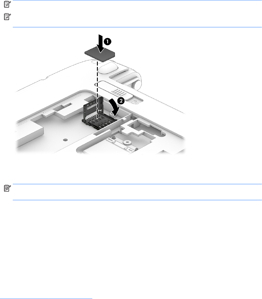 osadzona. Obróć gniazdo (2) w dół, aby zabezpieczyć kartę SIM w złączu.