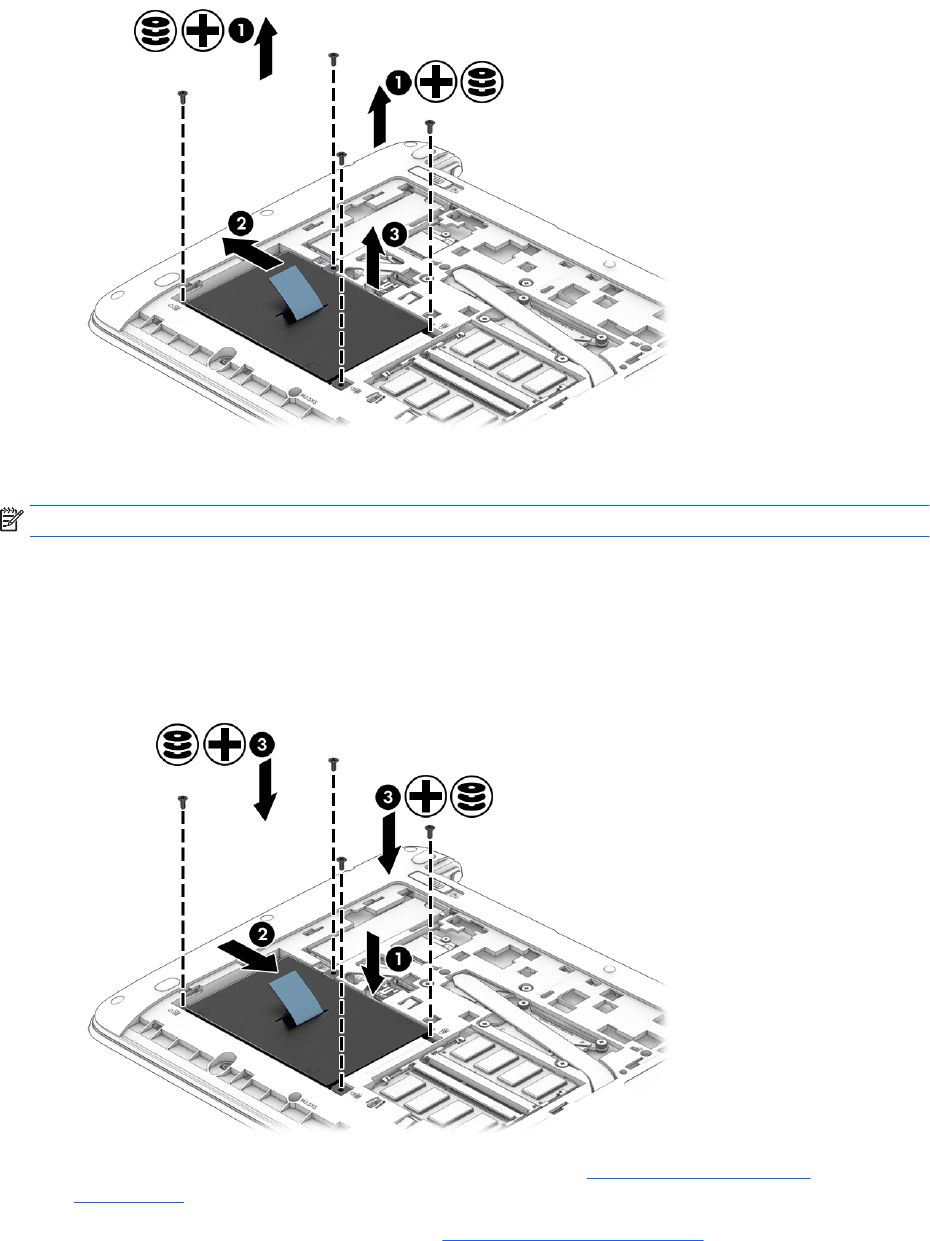 7. Podignite tvrdi disk (3), a zatim povucite tvrdi disk iz odjeljka tvrdog diska.