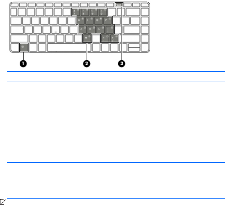 (3) Numbriluku klahv Lülitab sisseehitatud numbriklahvistiku sisse või välja, kui vajutate
