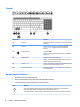 (1)   Skārienpaneļa zona Nolasa jūsu pirkstu žestus, lai pārvietotu rādītāju vai aktivizētu
