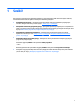 Prisijungimas prie WLAN PASTABA: prieš jungdamiesi prie interneto namuose, turite sudaryti sutartį su interneto paslaugų teikėju (IPT). Jei norite įsigyti interneto paslaugų ir modemą, kreipkitės į vietinį IPT. IPT padės nustatyti modemą, įdiegti tinklo kabelį, suteikiantį galimybę kompiuterį su belaidžio ryšio kelvedžiu prijungti prie modemo, ir išbandyti interneto paslaugą. Norėdami prisijungti prie WLAN, atlikite toliau nurodytus veiksmus. 1. Įsitikinkite, kad WLAN įrenginys įjungtas. 2.