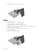 2. 将底座顶部的挂钩卡入电脑背面上部的两个大孔中 (1)。
