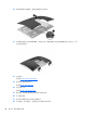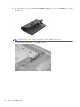 要卸下无线鼠标的电池,请取下鼠标底面的电池盖 (1),然后从电池槽中取出电池 (2)。