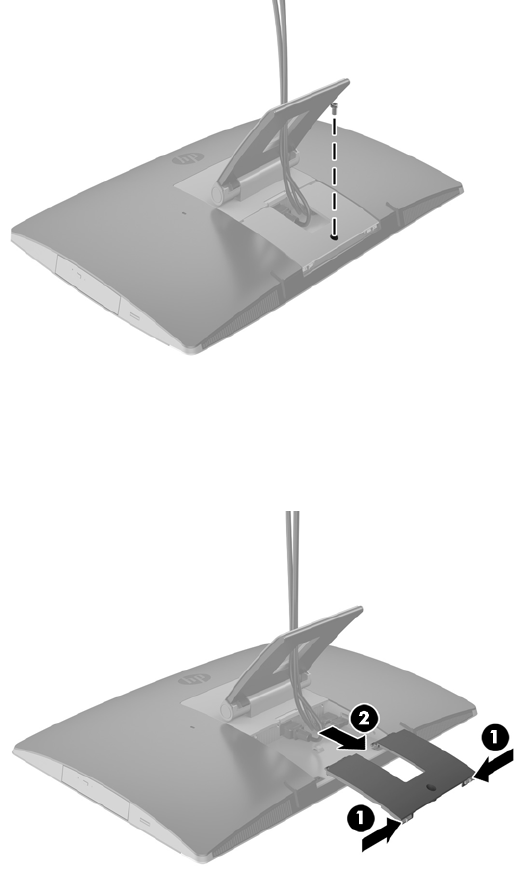 4. Τραβήξτε το κάλυμμα θυρών προς τα κάτω και απομακρύνετέ το από τον υπολογιστή (2).