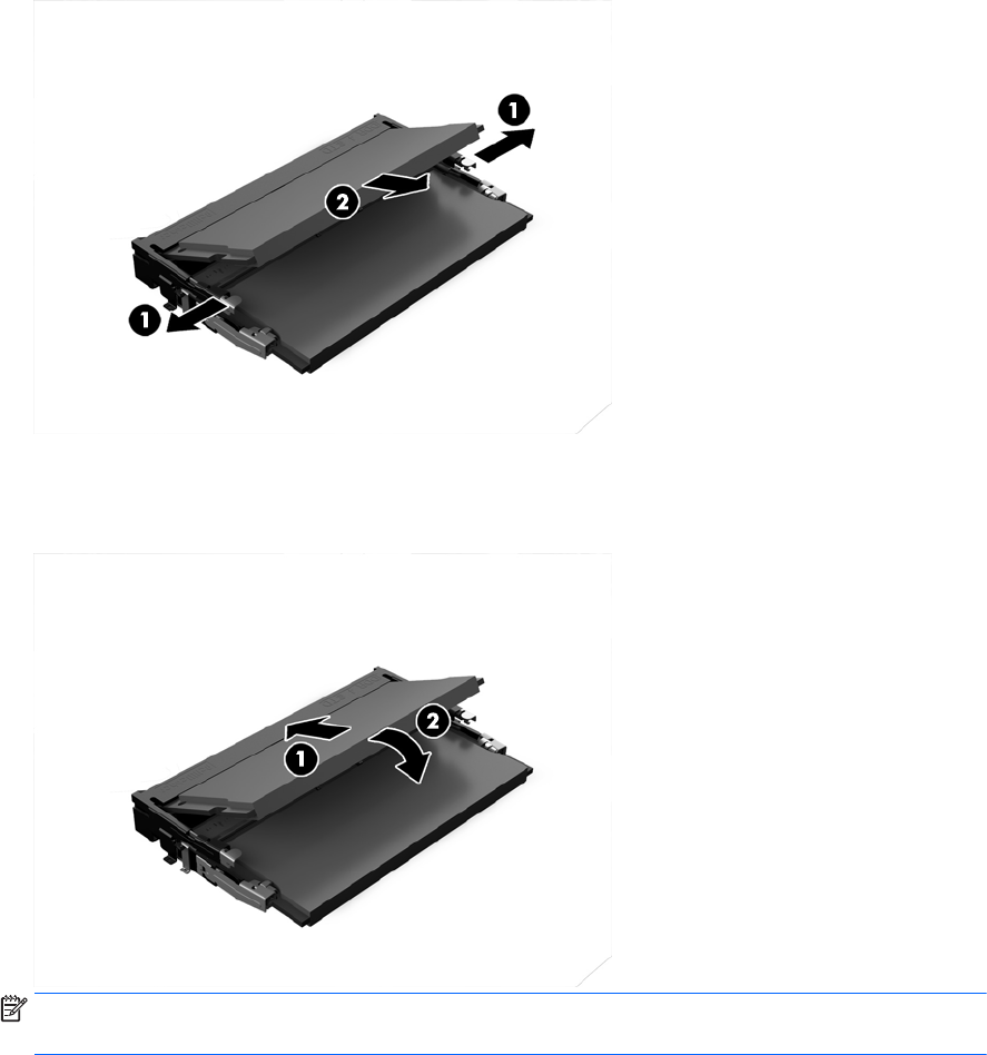 μονάδας SODIMM (1) και στη συνέχεια τραβήξτε τη SODIMM έξω από την υποδοχή (2).