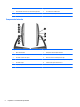 - 6. Dacă doriţi, puteţi trece o sârmă (nu se furnizează) prin inelul de prindere pentru a asigura cablul de alimentare. Dacă modelul de computer este un ProOne 400, puteți de asemenea să asigurați ştecherul prin apăsarea acestuia în slotul de sub conectorul de alimentare până când se blochează pe poziţie. Conectarea unui afişaj Conectorul DisplayPort din partea din spate a computerului vă permite să conectaţi un afișaj la computer.