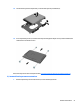 13. Vapauta asema vetämällä kiintolevyaseman häkin salpa pois 2,5 tuuman kiintolevystä (1).