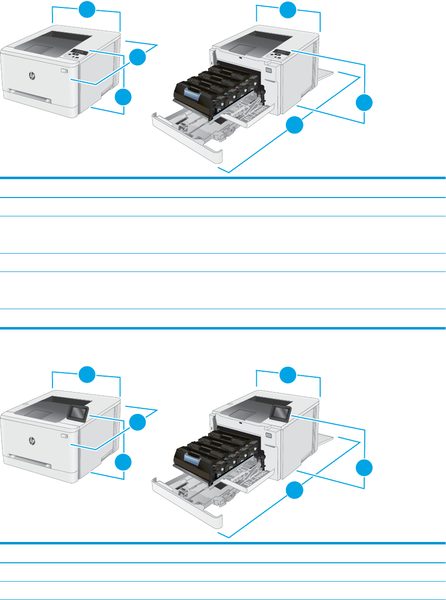 1-2. attēls. M254dw sērijas modeļu izmēri