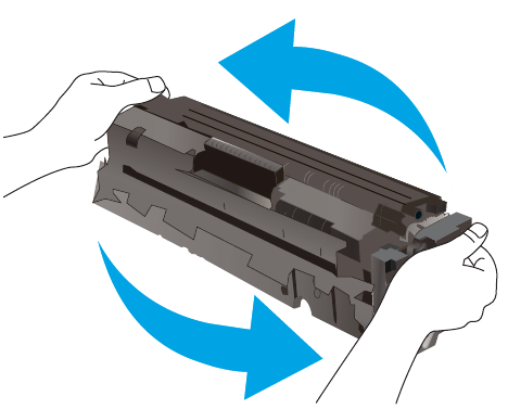no vienas puses uz otru. Ielieciet tonera kasetni atpakaļ printerī un aizveriet vāku.