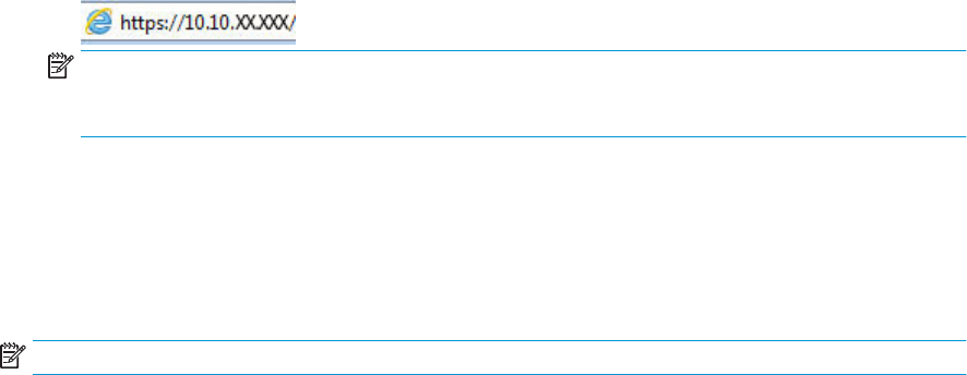 b. Åbn en browser, og indtast IP-adressen eller værtsnavnet i adressefeltet på nøjagtig samme måde,