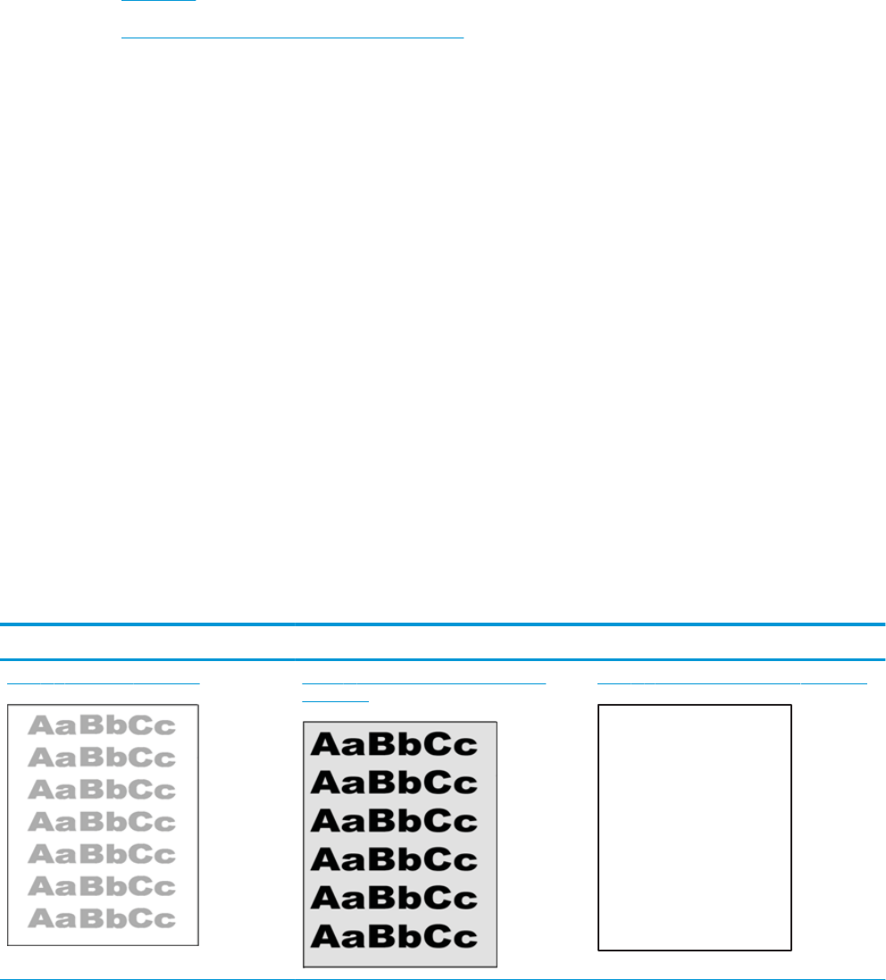 Tabel 6-2 Lys udskrift på side 109 Tabel 6-3 Grå baggrund eller mørk udskrift