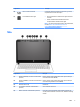 (1) Botão de ativação/desativação do TouchPad Ativa e desativa o TouchPad.