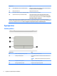(2) Območje sledilne ploščice Z njo premikate kazalec in izberete ali aktivirate elemente na