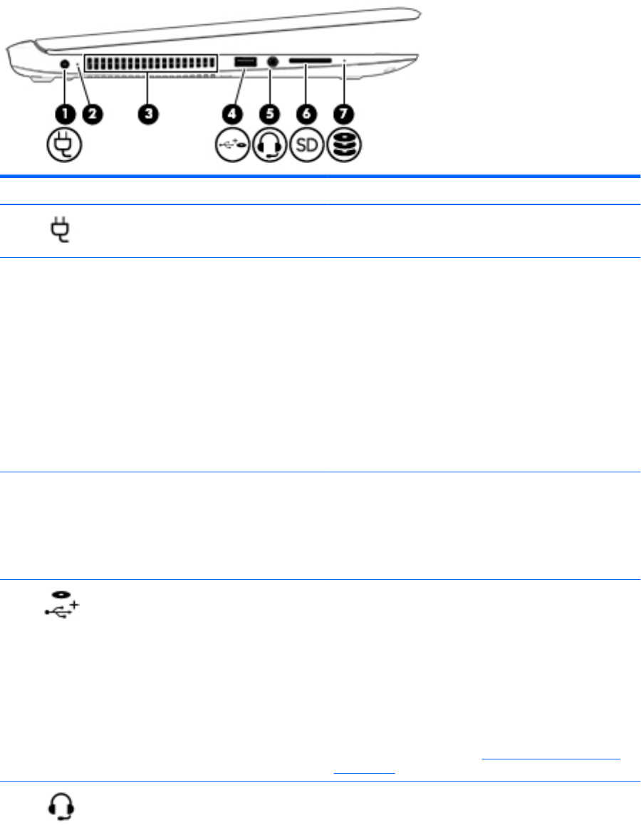 (4) Port ładowania USB 2.0 (zasilany) Umożliwia podłączenie opcjonalnego urządzenia USB, takiego