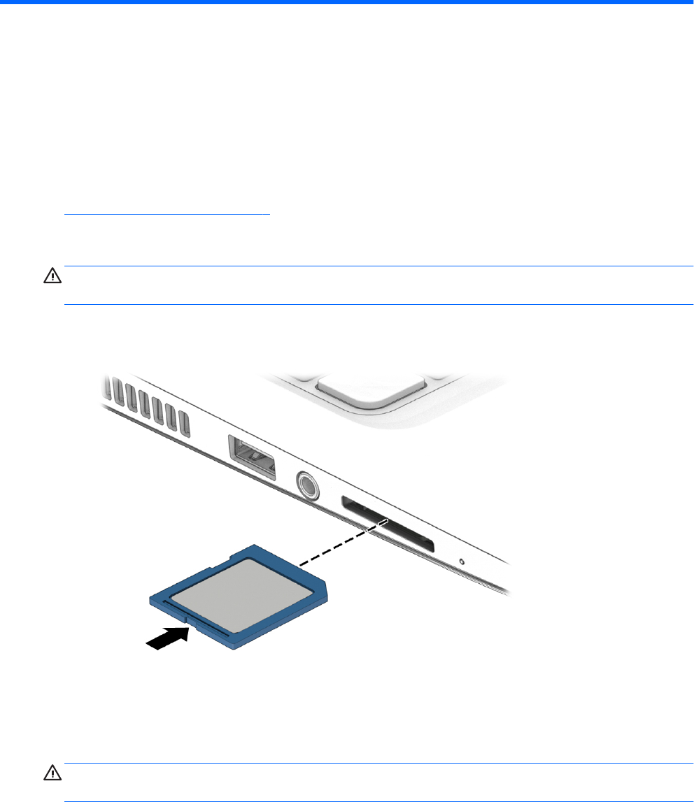 OSTROŻNIE: Aby zmniejszyć ryzyko uszkodzenia złączy karty pamięci, podczas wkładania karty nie należy