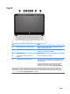 (1) TouchPadin käynnistys- ja sammutuspainike Käynnistää TouchPadin ja sammuttaa sen.