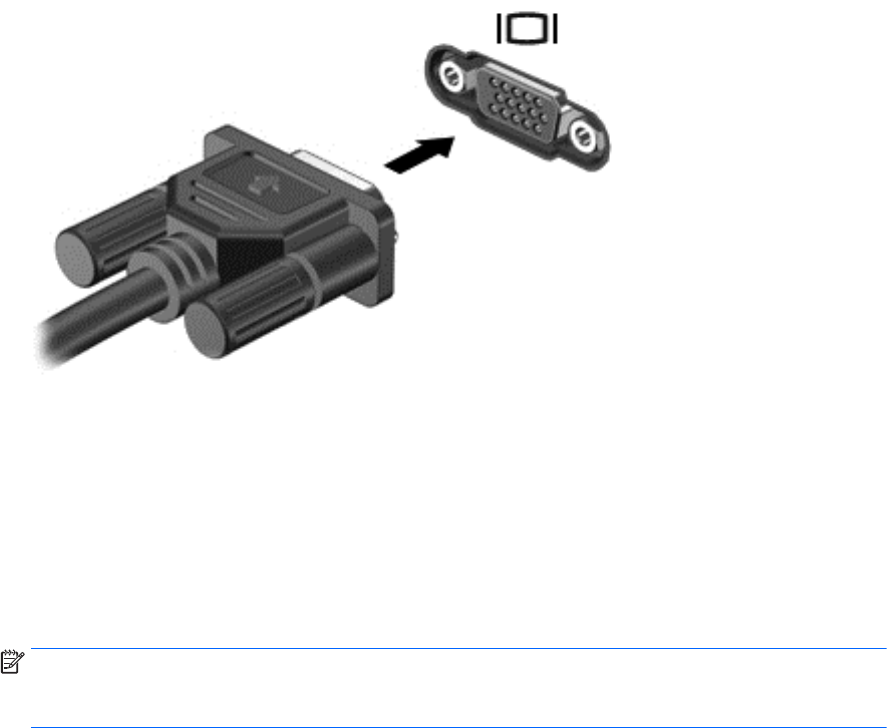 1. Pripojte kábel VGA z monitora alebo projektora do portu VGA na počítači podľa ilustrácie.