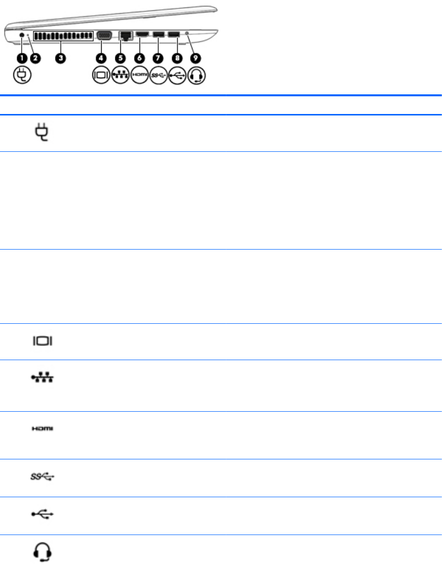 Prise/voyants RJ-45 (réseau) Permet de connecter un câble réseau.