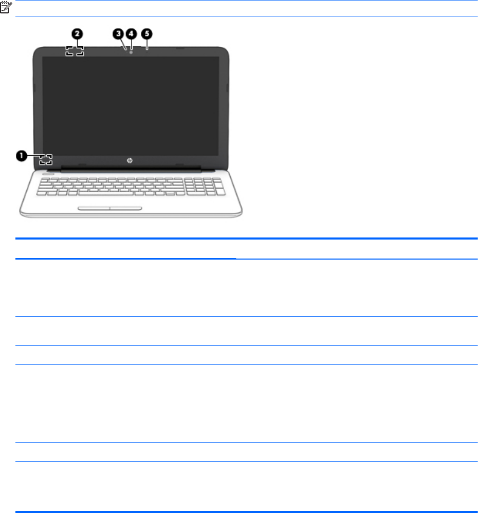 (3) Voyant de la webcam Allumé : la webcam est en cours d'utilisation.