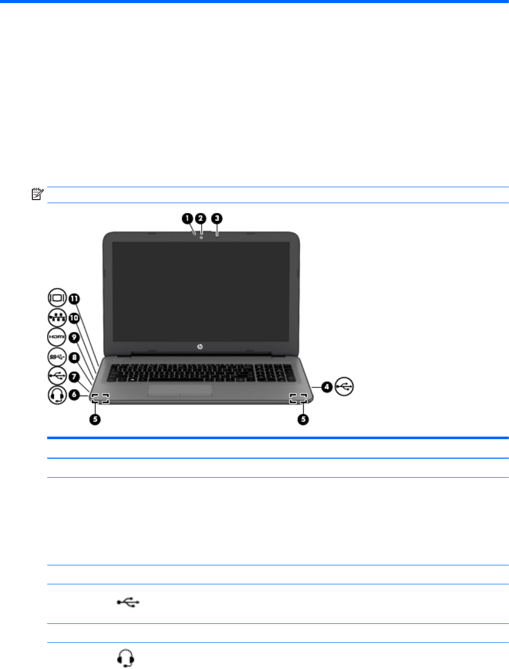 (1) Voyant de la webcam Allumé : la webcam est en cours d'utilisation.