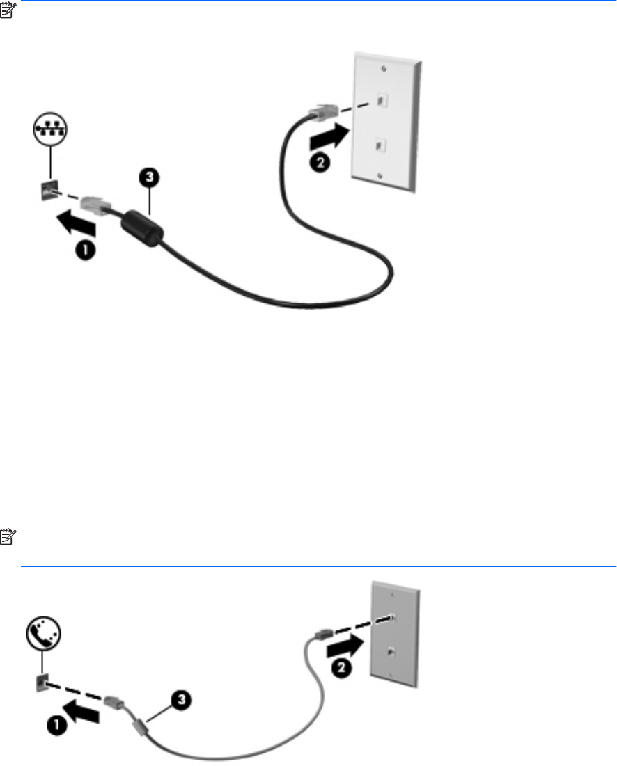 電話插孔因國家/地區而異。若要在非電腦購買地所在的國家/地區使用數據機和數據機纜線,您必須取