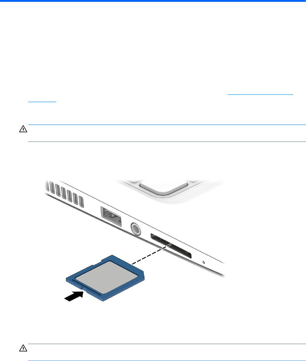 PERHATIAN: Untuk mengurangi risiko kerusakan pada konektor kartu memori, masukkan kartu memori