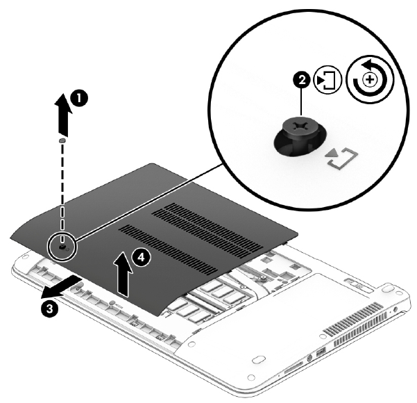 3. Dorong penutup akses ke arah depan komputer (3), lalu angkat (4) untuk melepas penutup akses.