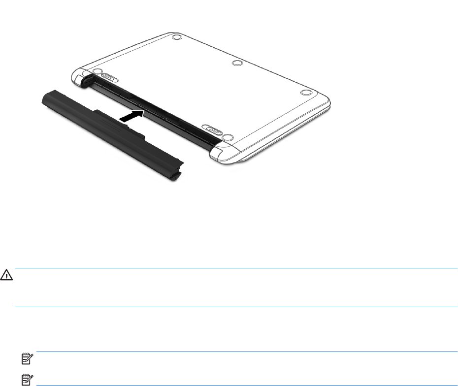 2. Włóż baterię do wnęki, aż zostanie prawidłowo osadzona. Zatrzaski zwalniające baterię automatycznie