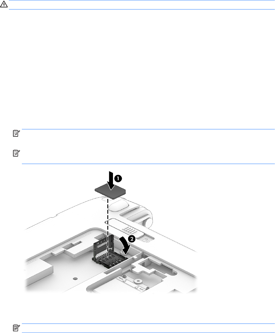8. Umetnite SIM karticu (1) u SIM priključak sa zasunom za zaključavanje i nježno gurnite SIM karticu tako