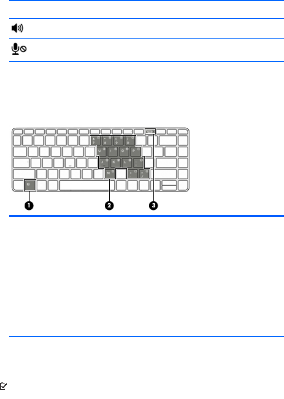 (1) tipka fn Uključuje i isključuje ugrađenu numeričku tipkovnicu kada se pritisne u