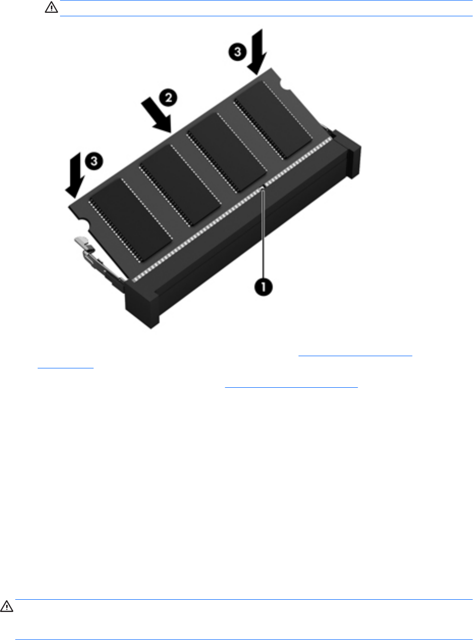 c. Lagano pritisnite memorijski modul prema dolje (3), pritišćući lijevi i desni rub memorijskog