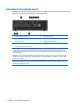 Composants du panneau avant La configuration des unités peut être différente selon le modèle. Certains modèles sont munis d’un cache protecteur recouvrant le compartiment de l’unité optique slim. 1 Lecteur optique fin (en option) 6 Connecteur de casque 2 Port de chargement USB 2.0 (avec alimentation) (noir) 7 Bouton d'alimentation double état 3 Port USB 2.0 (noir) 8 Voyant d'activité du disque dur 4 Ports USB 3.