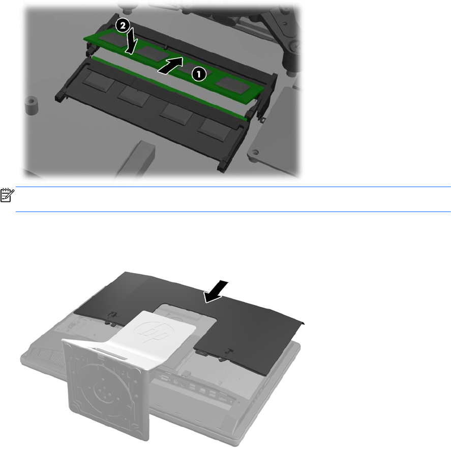 8. Para instalar un módulo de memoria, deslice el nuevo SODIMM en el hueco en un ángulo de