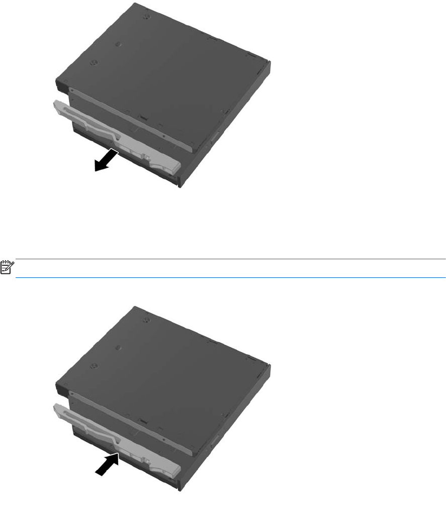 8. Tire del pestillo fuera de la unidad de disco óptico.