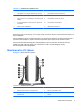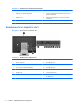Таблица 1-2 Компоненти отстрани (продължение) Компонент Компонент 3 USB порт 3.0, бързо зареждане 8 Бутон за изваждане на поставката на оптичното дисково устройство 4 USB порт 3.0 9 Индикатор за активност на оптичното дисково устройство 5 Микрофон/вход line-in 10 Бутон за захранване Компоненти в задната част Фигура 1-4 Компоненти в задната част Таблица 1-3 Компоненти в задната част 4 Компонент Компонент 1 Панел за достъп 8 (2) USB порта 3.