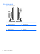 Side components Figure 1-3 Side components Table 1-2 Side components 4 Component Component 1 Hard disc drive activity LED 6 Headset/line out jack 2 HP 6-in-1 media card reader (optional) 7 Tray-load optical disc drive 3 USB 3.0 port, fast-charging 8 Optical disc drive eject button 4 USB 3.