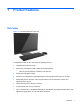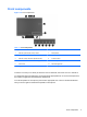 Front components Figure 1-2 Front components Table 1-1 Front components Component Component 1 Webcam (optional) with privacy shutter 7 Mute speaker 2 Dual microphone array (optional) 8 Reduce volume 3 Webcam activity LED (with optional webcam) 9 Increase volume 4 16:9 widescreen LED-backlit LCD display 10 Mute microphone 5 Power LED 11 Decrease brightness 6 High-performance stereo speakers 12 Increase brightness Touch the icon area (7–12 above) to cause the icons to illuminate, th