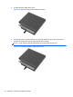 5. Amplasaţi computerul cu faţa în jos pe o suprafaţă plană, moale. HP vă recomandă să folosiţi o